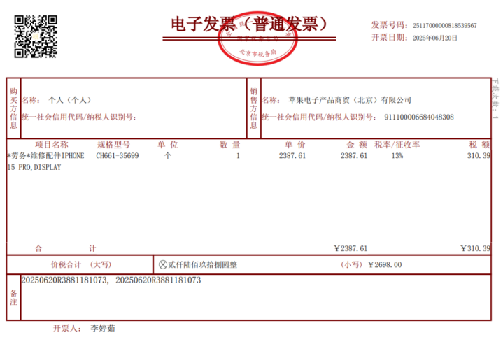 事发后,蔡先生当场拨打110报警,并在海淀区永丰派出所民警的建议下拨打122反映了情况。事后,蔡先生多次联系滴滴出行科技有限公司,要求赔偿损失,但滴滴出行认为无法证明事件系司机责任造成,无法全部承担蔡先生手机维修费用,可申请200元作为补偿。